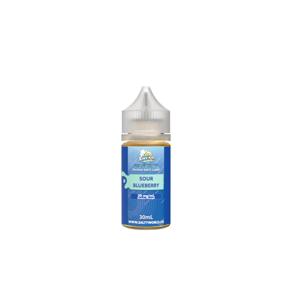 Previously known as Salty Krush World Ice Blueberry Nicotine Salt E-Liquid . The sweet and aromatic taste of blueberries with